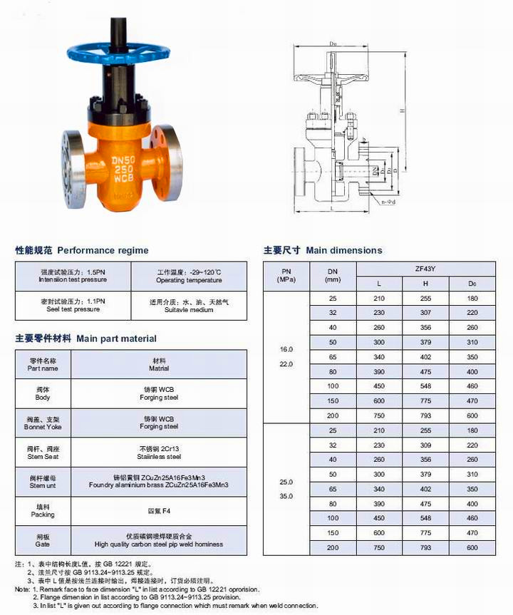 【ZF43Y高(gāo)壓平闆閘閥-主要(yào)外(wài)形尺寸】