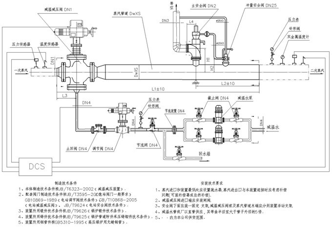 1)、進口蒸汽壓力P1≤5.4MPa,溫度T1≤485℃